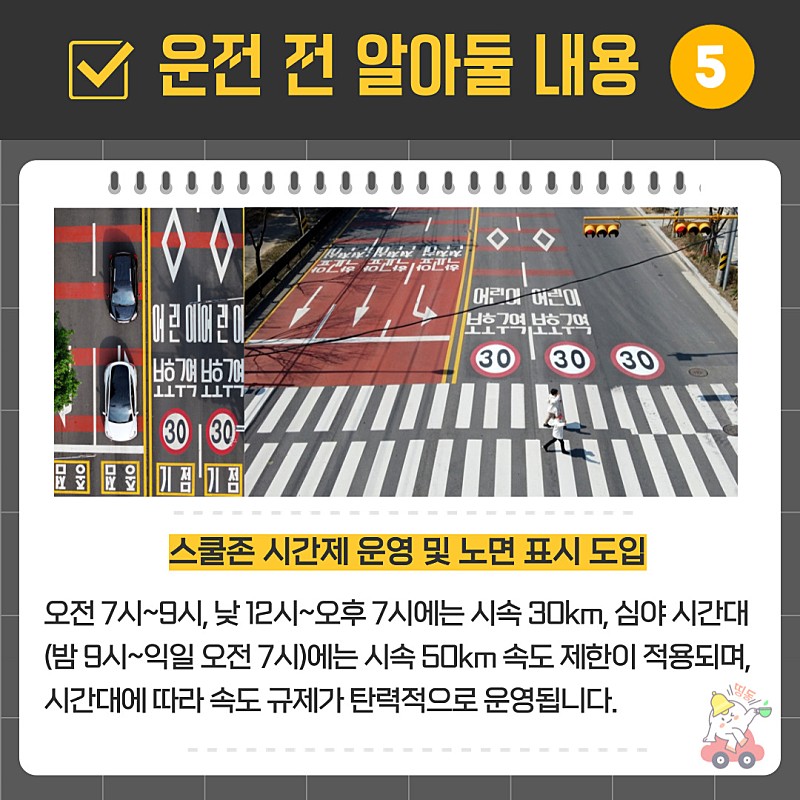 오전 7시~9시, 낮 12시~오후 7시에는 시속 30km,