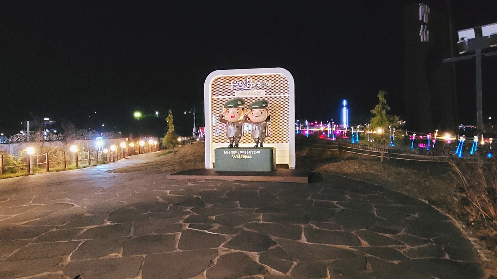 '논산을 새롭게 시민을 행복하게' 논산시의 슬로건에 맞게 시민의 행복을 추구하는 상징으로 세워진 논산시의 농산물 공동브랜드 '육군병장'이 시민의 행복을 기원하는 듯합니다.