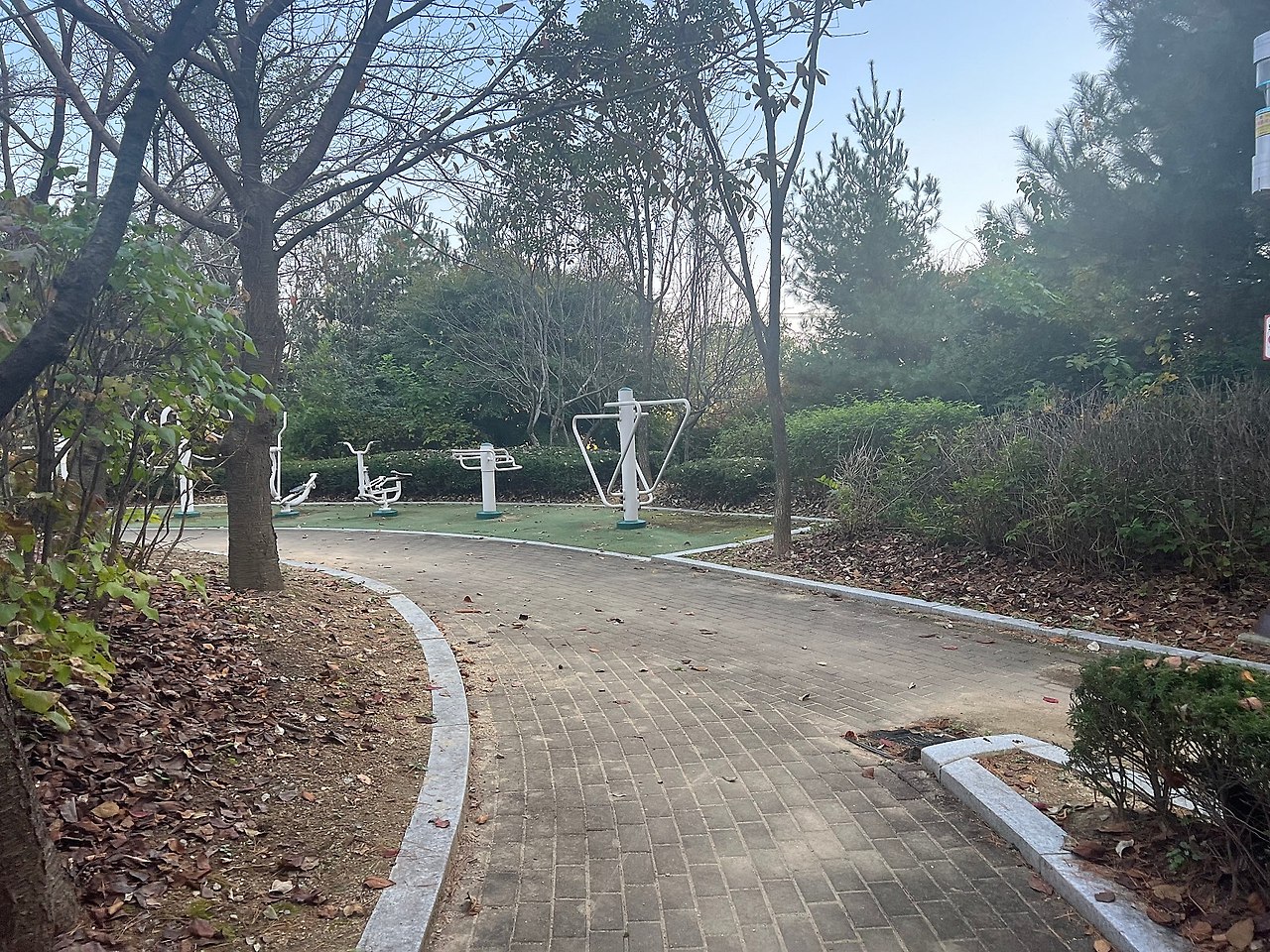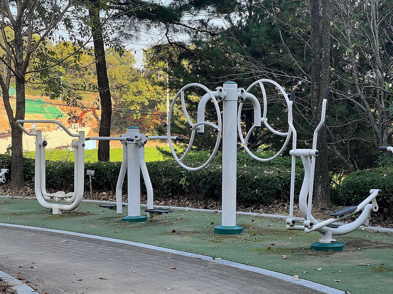 간단한 운동을 즐길 수 있는 건강기구들이 산책로를 따라 설치되어 있습니다.