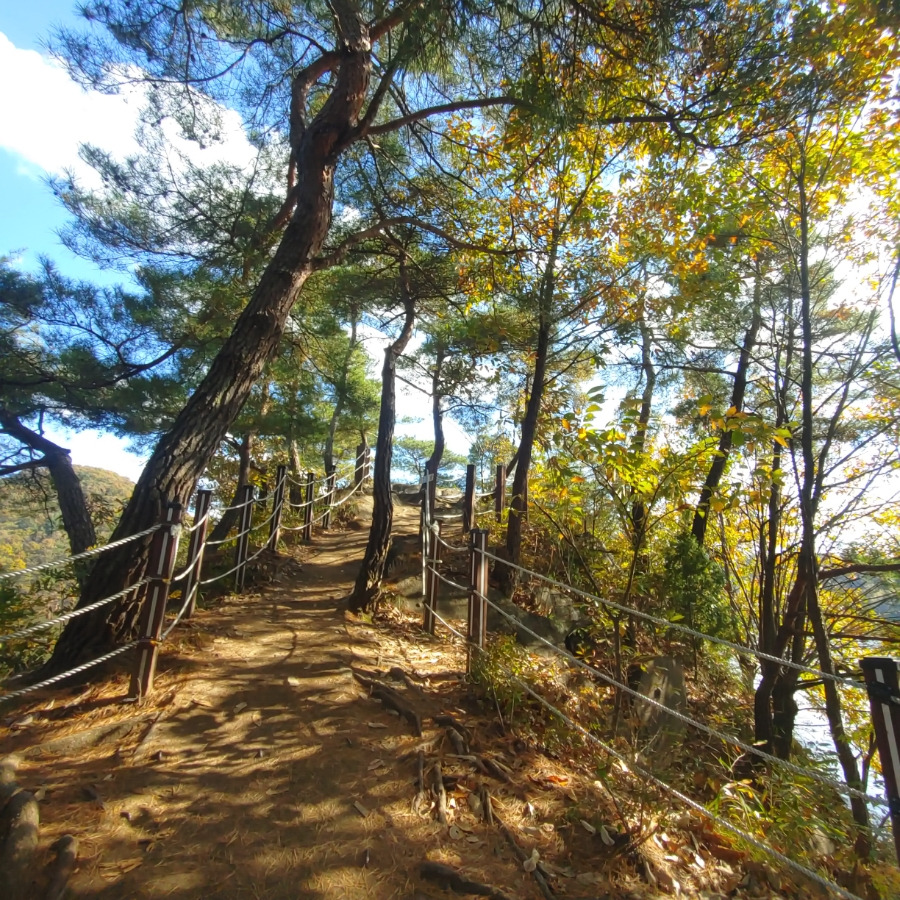 여기서 조금 걸어가서 정자를 지나서 막다른 길에 도달합니다. 더 이상 지나갈 수 없기에 얼핏 보이는 경치는 더 절경입니다. 조만간 개통이 되어서 온전한 부소담악의 절경을 즐길 수 있기를 기대합니다.