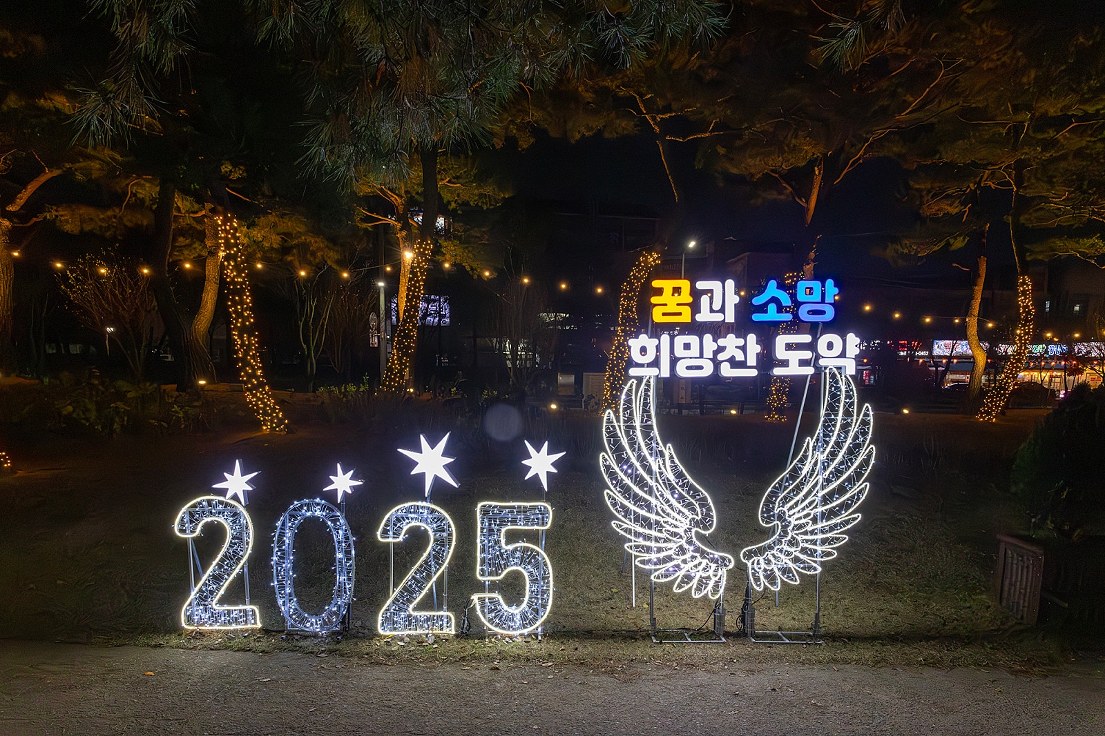 '꿈과 소망, 희망찬 도약'이라는 문구와 함께 빛나는 조명은 새로운 해를 맞아 대덕구가 펼칠 활기찬 도약과 따뜻한 변화를 상징하는 것 같습니다.