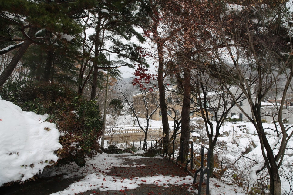 하얗게 내린 눈과 함께 가을의 분위기가 남겨져 있어서 그런지 춥지 않았습니다.