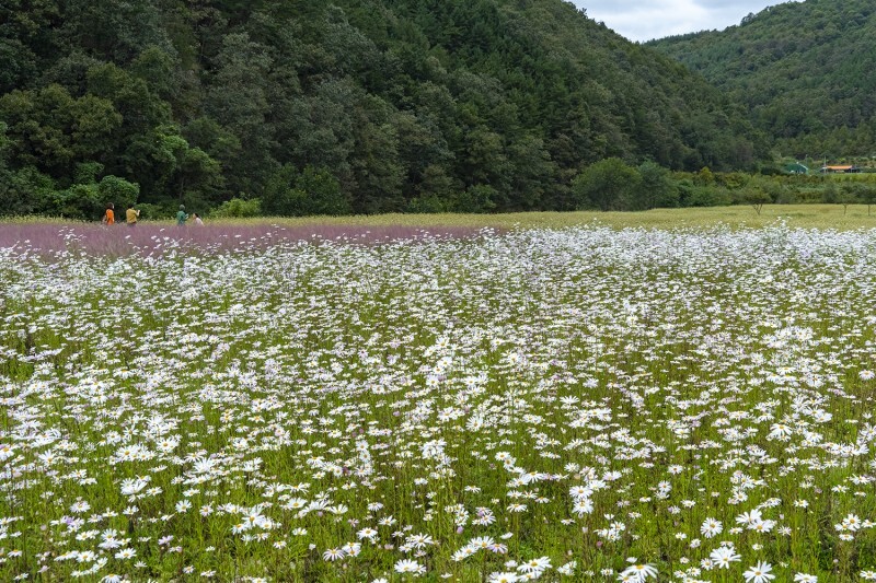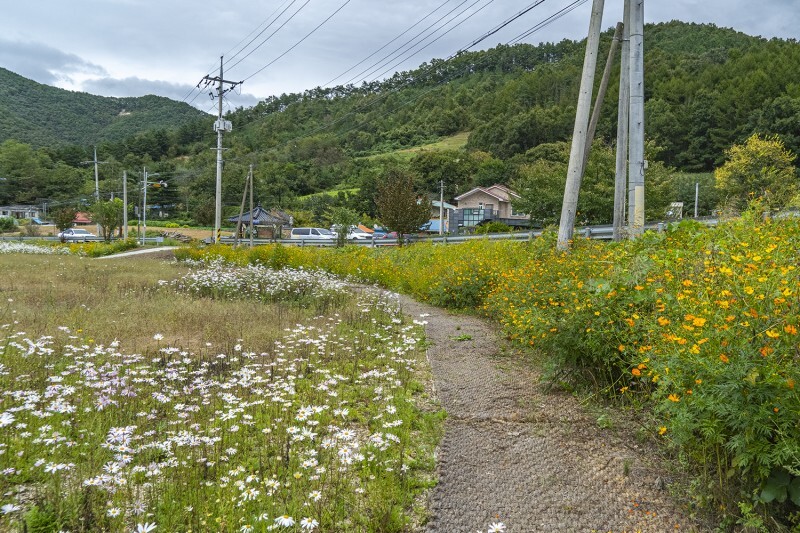 마을 주민들은 이곳에 메밀꽃 외에도 노란코스모스, 핑크뮬리, 구절초 등을 심어 놓았습니다.