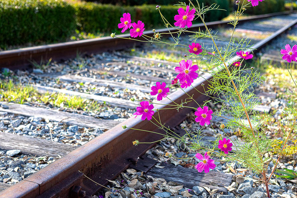 코스모스 피어 있는 철길