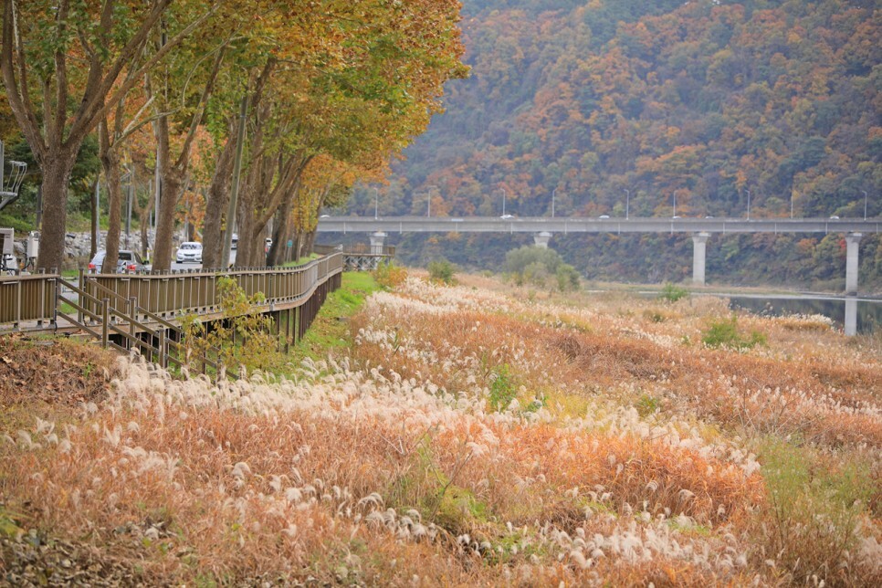 가곡면 새별공원은 남한강 갈대숲을 따라 약 1.4km의 구간에 조성된 공원으로 테크로드를 따라 울창한 느티나무가 심어져 있어 깊어가는 가을을 만끽할 수 있는 장소이기도 합니다.