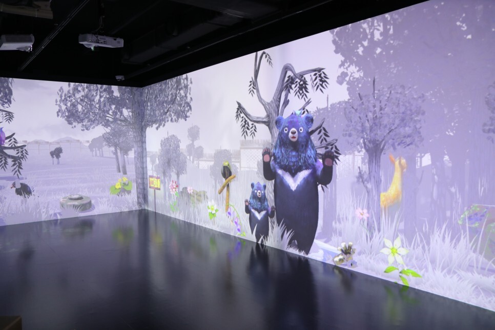 전시 되는 스크린 벽 화면을 잘 살펴보면 반달가슴곰은 중부와 동쪽 지방에서만 살고 있어서 서쪽으로는 가지 않고 두루미나 동식물은 동쪽으로 오지 않아서 각자의 위치를 지키고 있었는데요. 이렇게 동식물들의 배치를 통해서도 어느 서식지에 살고 있는지 자연스럽게 배울 수 있도록 신경 쓴 점이 매우 인상적이었습니다.