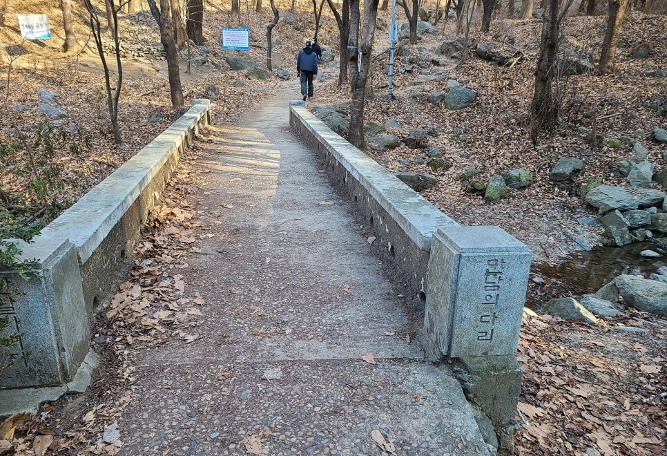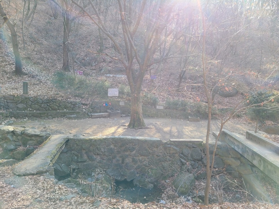 만남의 다리를 지나 겨울의 분위기가 완연한 길을 걸어가니, 오른편의 약수터와 몇 가지 운동기구도 볼 수 있어서 길을 걷다가 가볍게 몸을 풀기에도 좋아 보였습니다.
