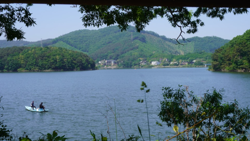세 번째 추천 코스는 안성의 저수지와 호수을 볼 수 있는 안성 41코스입니다. 안성 8경 중 하나인 금광저수지가 41코스의 시작을 알리는데요. 작은 낚싯배가 둥둥 떠다니는 여유로운 저수지 위로 보이는 산세와 풍경이 아름다움을 자랑합니다.