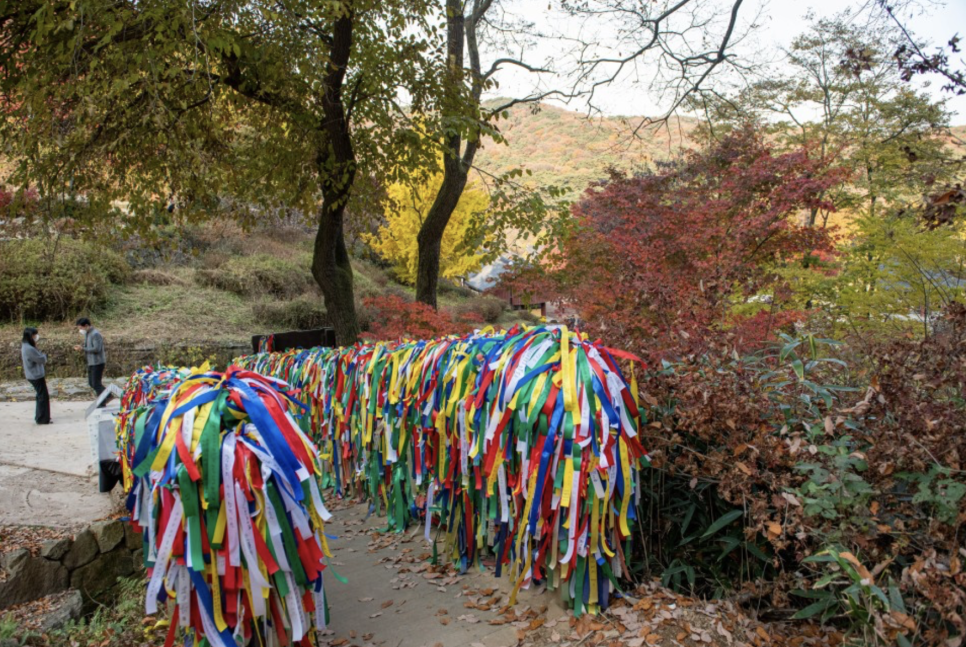 소원을 적은 알록달록한 천 조각들을 매달아 놓은 다리도 칠장사에서 볼 수 있는 매력 포인트입니다. 각종 시험을 앞둔 사람들이 방문하여 정성스럽게 소원을 쓰고 잠깐의 여유를 즐기는 이곳에는 한 가지 전설이 내려오는데요. 조선 영조 때 박문수라는 선비가 과거시험을 앞두고 다리 건너 있는 나한전에서 하룻밤을 묵게 되었을 때, 꿈에서 과거시험의 시제를 알려주어 장원급제를 하였다고 합니다. 만약 여러분도 칠장사에 방문하게 된다면, 2022년의 소망을 다리 위에 살포시 묶어보세요!