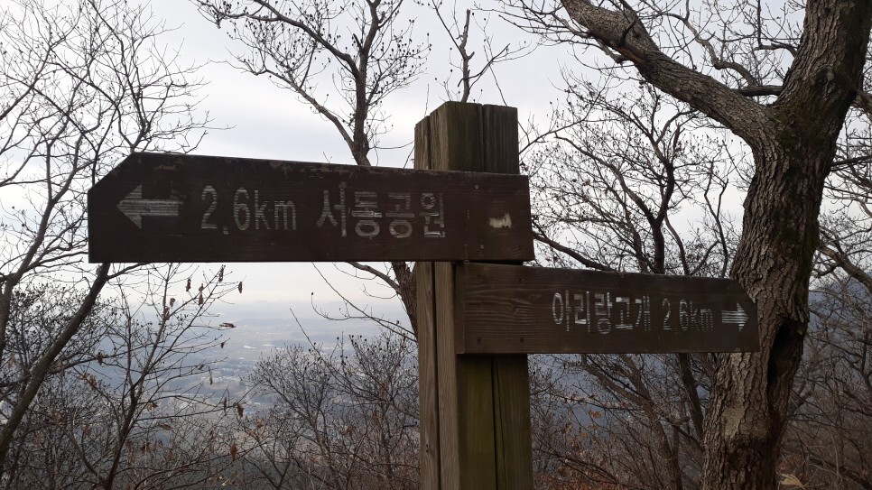 그 조망 터에서 아리랑고개(1.6㎞) 방향으로 가는 길은 완만하게 내리막이 이어진다. 7공수군부대 경계를 위한 ‘정찰감시’ 표지판에서 서동공원 ‘등산로’ 표지를 따라 우측으로 꺾어 아래로 한참을 내려가면 아리랑고개(다듬재)이다.