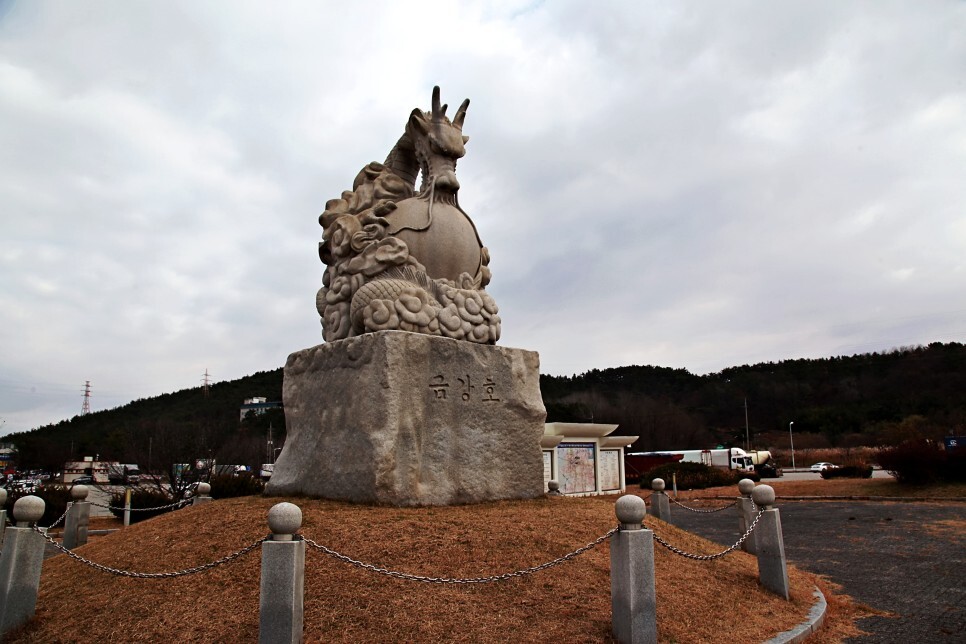 금강하구둑 조성 기념 조형물로 알을 품은 듯한 용이