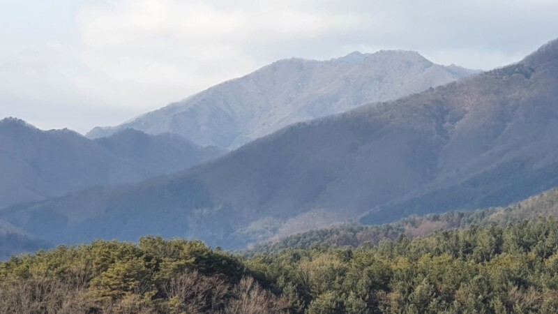 화악산에 눈이 내리고 있어서 잘 보이지 않는다.