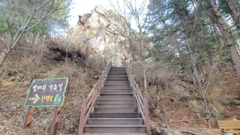 범바위는 북면사무소와 터미널 근방에 위치하고 있는데요, 주차장은 따로 조성되지 않았습니다. 약수터앞에 공터가 있긴 하지만 통행에 불편을 줄 수 있어 북면사무소 입구근방에 주차를 하고 걸어오는 것이 좋을듯 보입니다. 야트막한 언덕을 올라가면 곧바로 데크길이 이어지는데요, 코스는 생각보다 짧지만 경사가 급격해서 짧고 굵은 운동을 하는데 제격입니다.한가지 주의해야할 점은 범바위로 올라가는 길은 햇빛이 잘 들지 않는 곳이다보니 겨울에 방문하면 눈이나 얼음이 탐방로에 쌓여있을 수 있으니 이점 유의하시길 바랍니다!