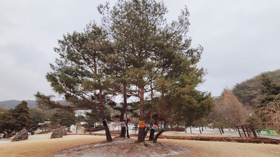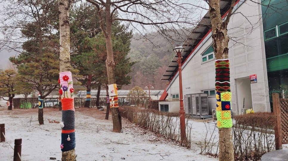 충북 청주에서 가볼만한 미동산 수목원의 겨울 옷을 갈아입는 이색적인 나무 털옷 작품을 감상하러 오세요~
