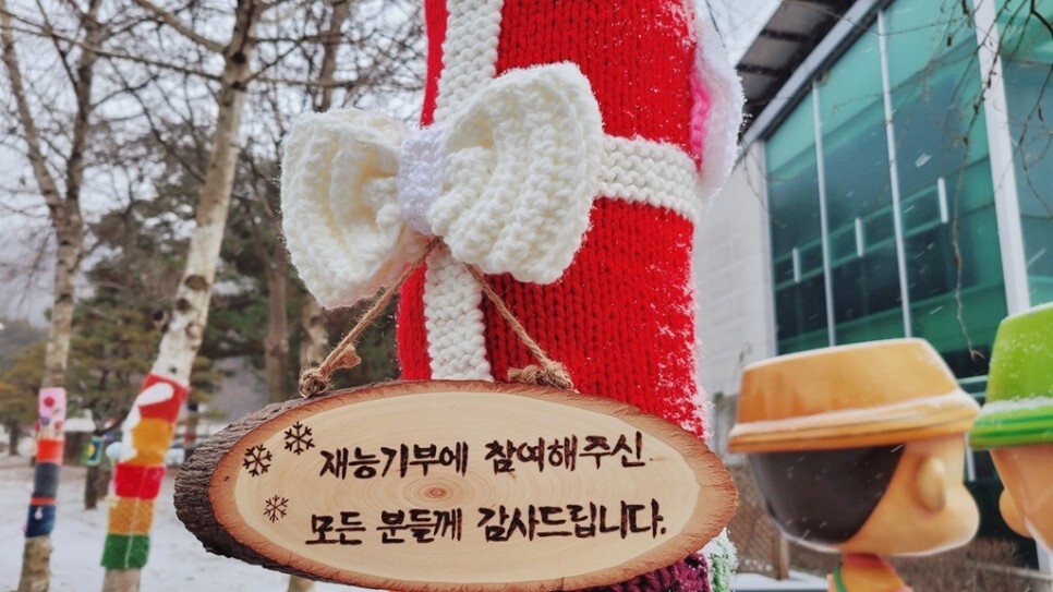 형형색색의 뜨개 옷을 입혀 추운 겨울 따뜻한 분위기를 자아내고 있습니다.