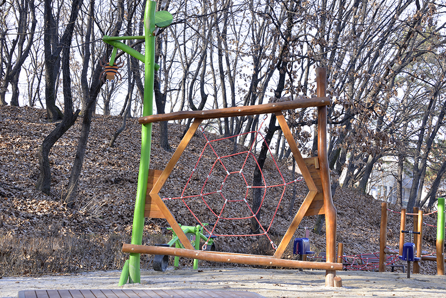 야트막한 산자락 아래 놀이시설들이 있어서