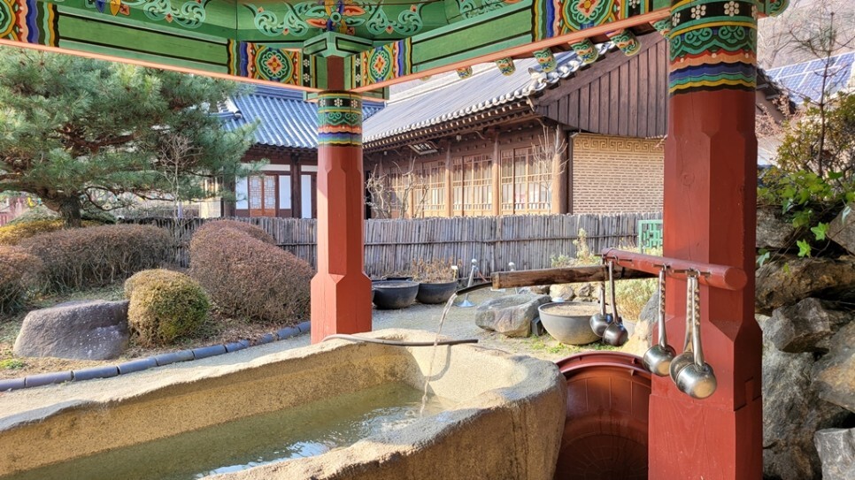 끊임없이 흘러내려오는 감로수 물을 바가지에 받아 마시면 물맛이 시원하고 좋습니다.