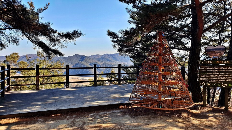 자물쇠들이 많고 전망대와 회룡대 정자가 자리합니다.