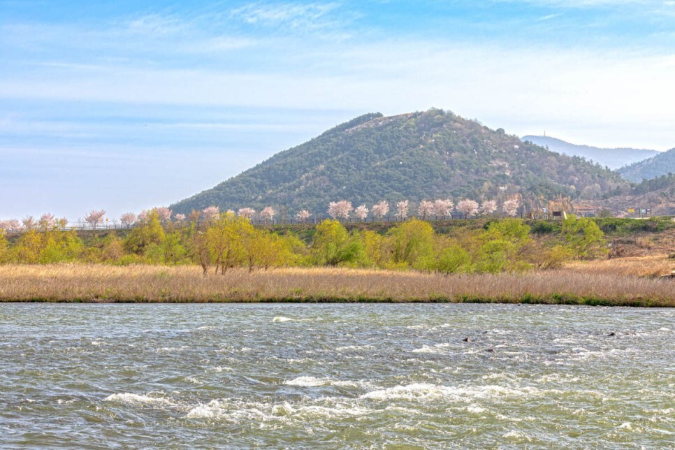4월 초에는 강둑에 심어진 벚꽃 그리고