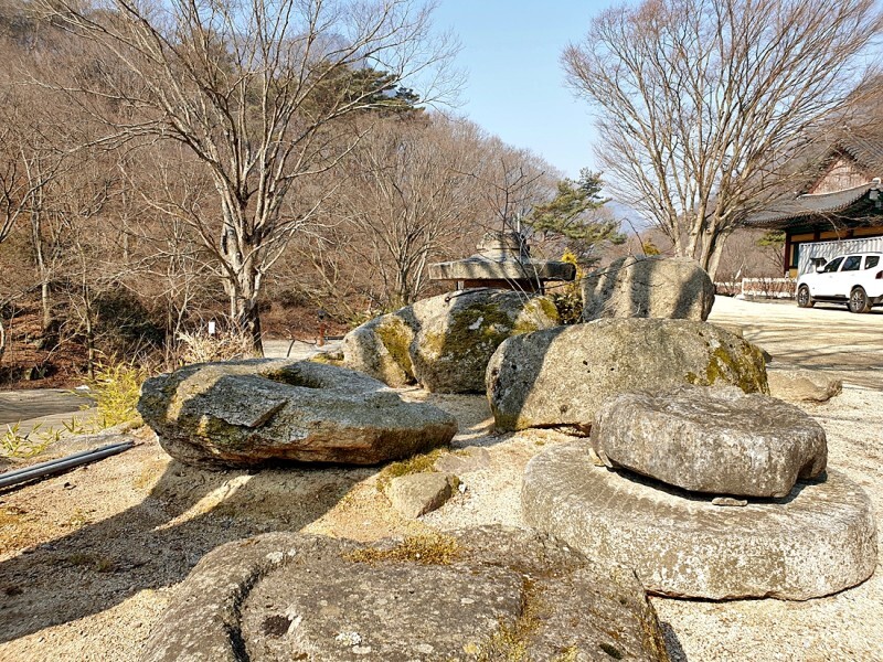 사찰 한편으로는 옛 건축의 흔적들도 보입니다. 연꽃 문양과 둥근 홈이 있는것으로 보아 부도나, 석탑의 흔적들이 아닐까 추측하게됩니다. 사찰 뒷편의 보개산 정산이 손에 잡힐 듯 가깝게 느껴지고 전방의 능선과 더해져서는 활짝 핀 연꽃모양의 산능성이 완성됩니다.