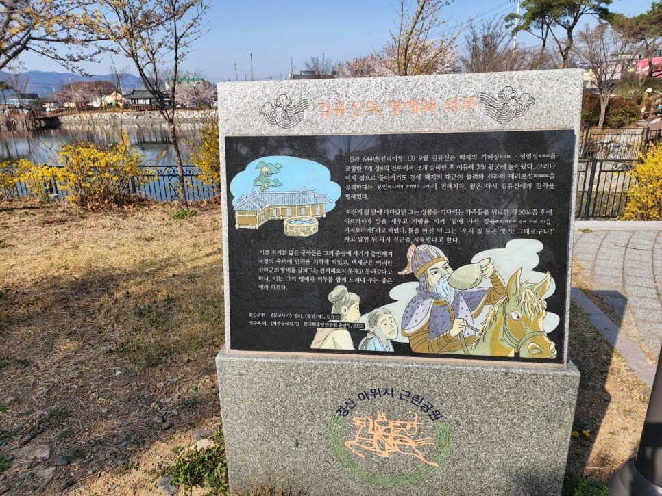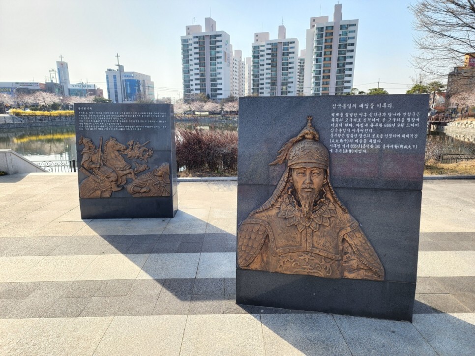 동상 주변으로는 김유신 장군의 출생, 업적 등