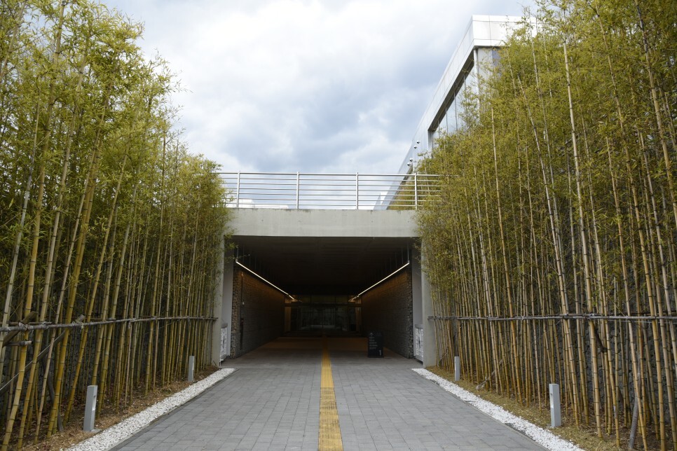 대나무 통로와 돌로 쌓인 벽을 지나면