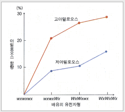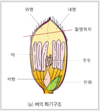 * 크세니아(xenia) : 종자의 배유(3배체)에서 우성유전자의 표현형이 나타나는 것으로 화분직감이라고도 하며, 메벼의 메성 유전자 Wx의 작용에서 확인할 수 있다.