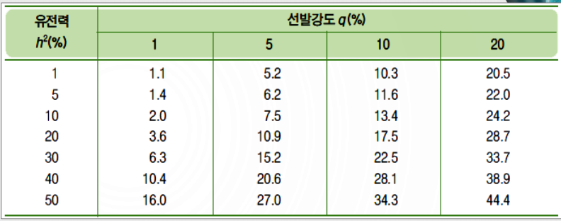 실현유전력 : 선발차에 대한 유전획득량의 비율