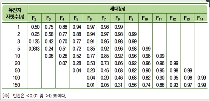 • 연속된 타식으로 열성 동형접합체(aa)의 빈도가 매우낮음