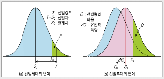 유전획득량 : 선발을 통해 집단이 유전적으로 진전된 정도. 선발반응이라고도 함