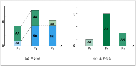 ⚫ 이형접합체(F1)가 양친보다 왕성한 생육을 나타내는 현상
