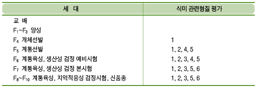 2) 벼 육종과정 중 식미 관련형질의 선발 (예)