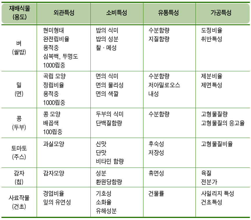따라서, 농산물에 대한 가공특성의 개량은 품질육종에서 중요한 몫을 차지하고 있음