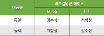 - 개생체의 레이스별로 침해하는 저항성 품종(유전자)이 다르고, 저항성 품종(유전자)마다 대응하는 레이스가 다름