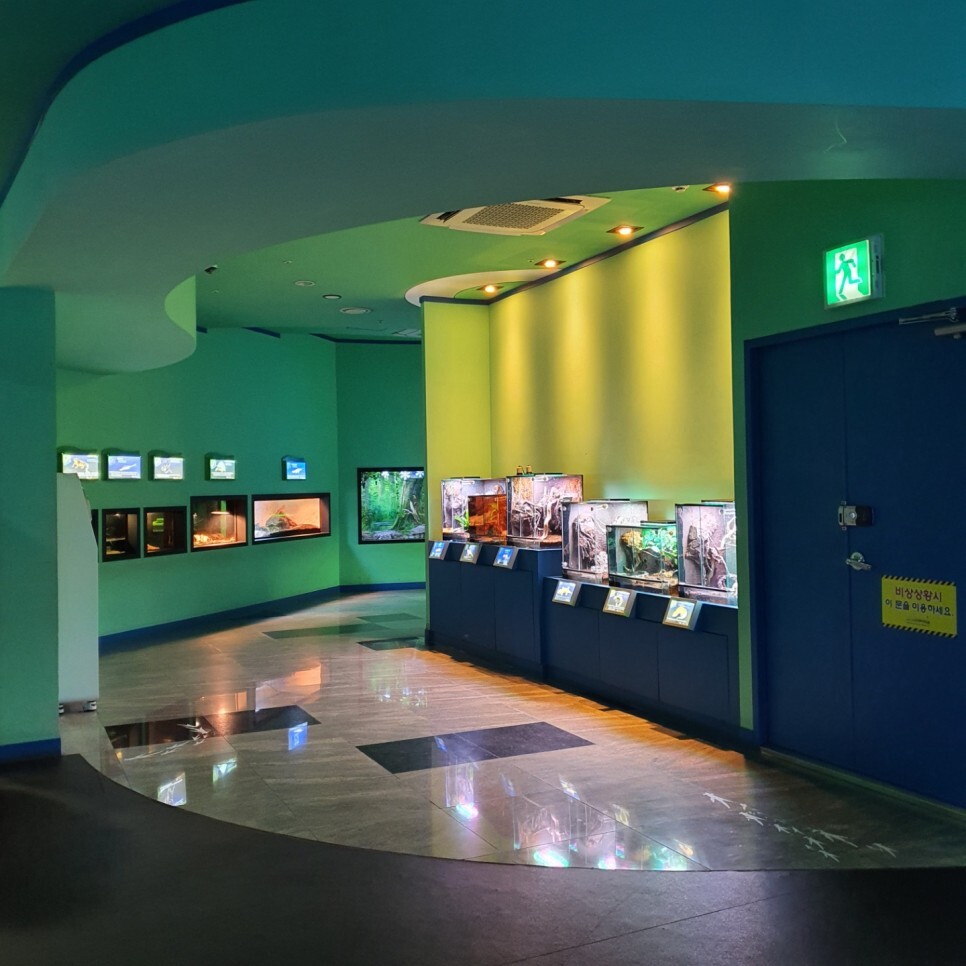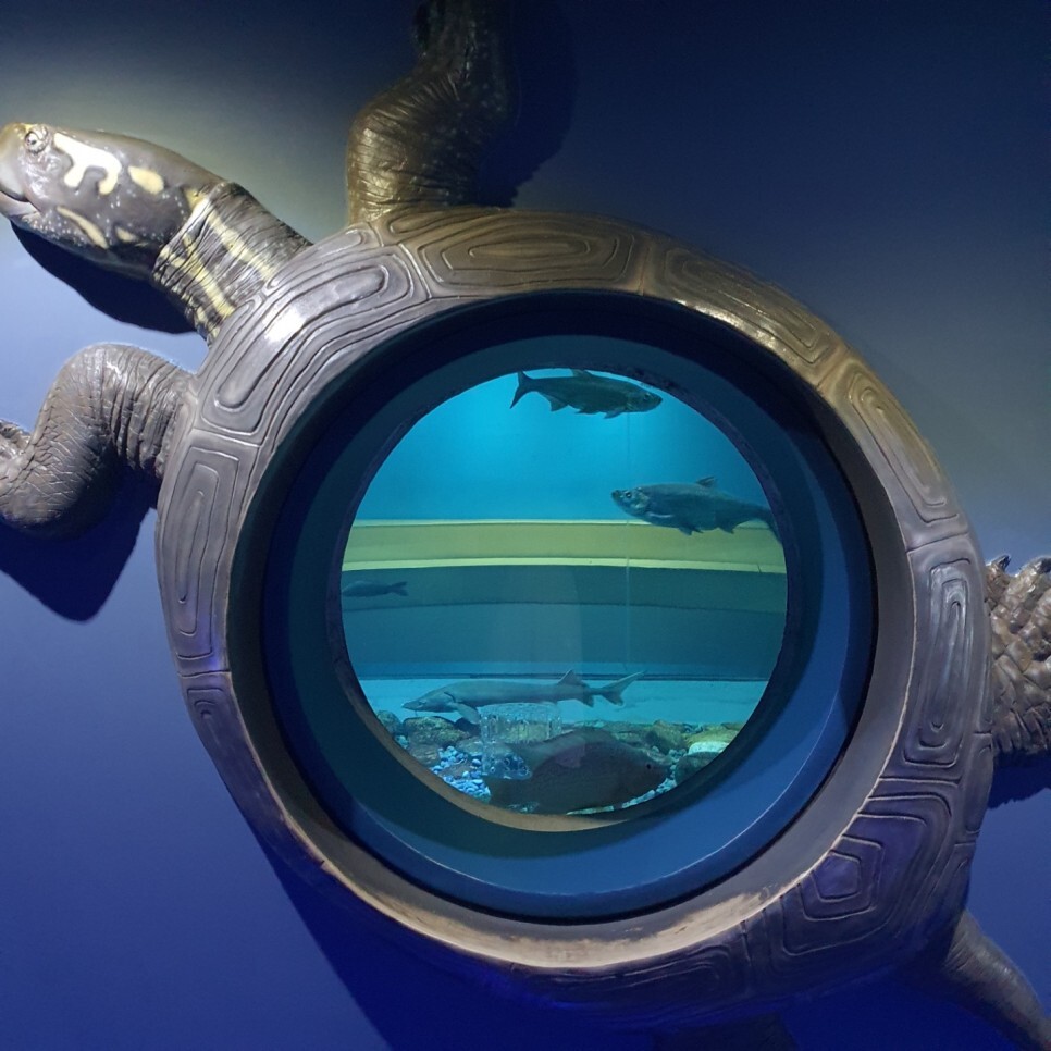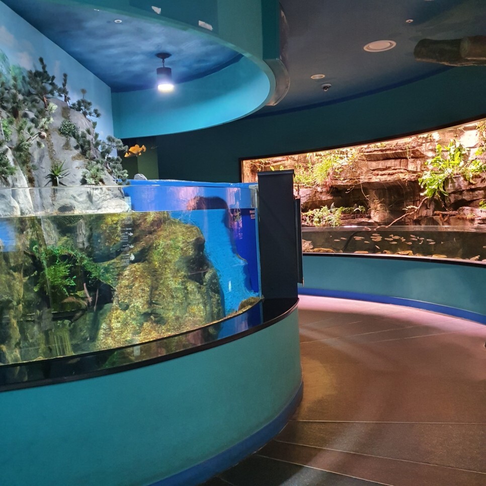 지하 2층까지 다양한 민물고기들을 만나고 지상 1층으로 올라가면 무시무시한 악어와 악어거북, 파충류, 그리고 하이라이트 수달을 만날 수 있습니다.