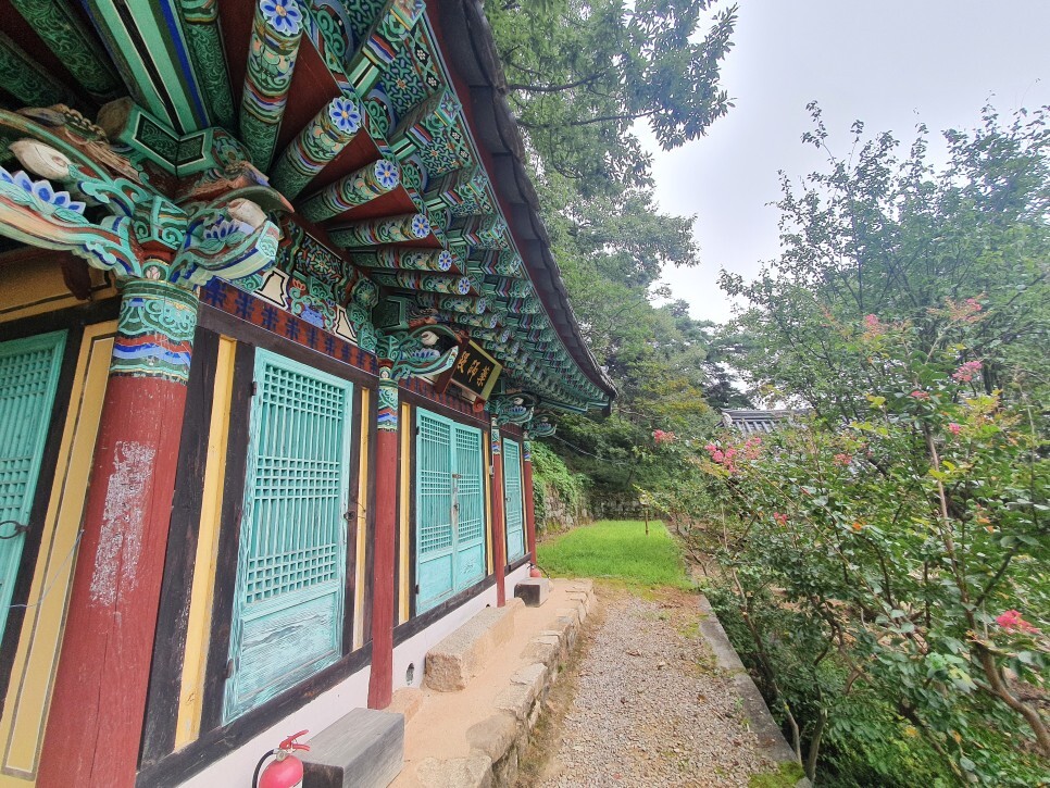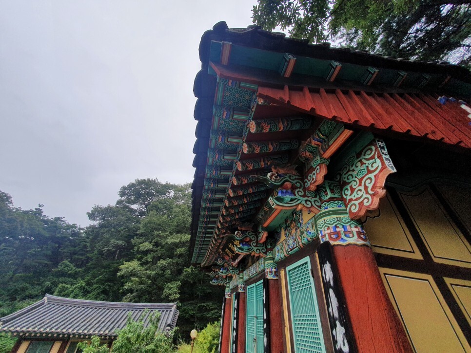 왼편의 지장전의 건축물은 다양한 색의 칠이 더해져