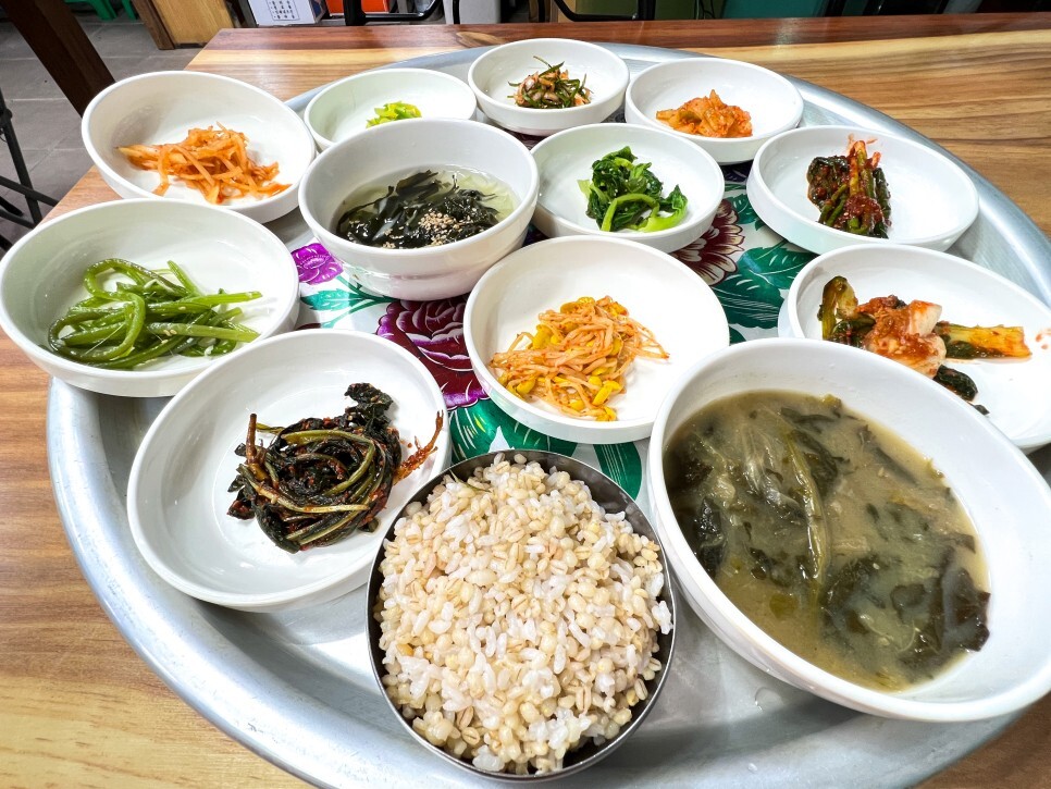 반찬만 해도 열 한가지, 된장이 진하게 들어간 시래기국도 제 입맛에 딱입니다. ‘뭘 먼저 먹을까’ 고민될 정도로 반찬 종류가 다양해서