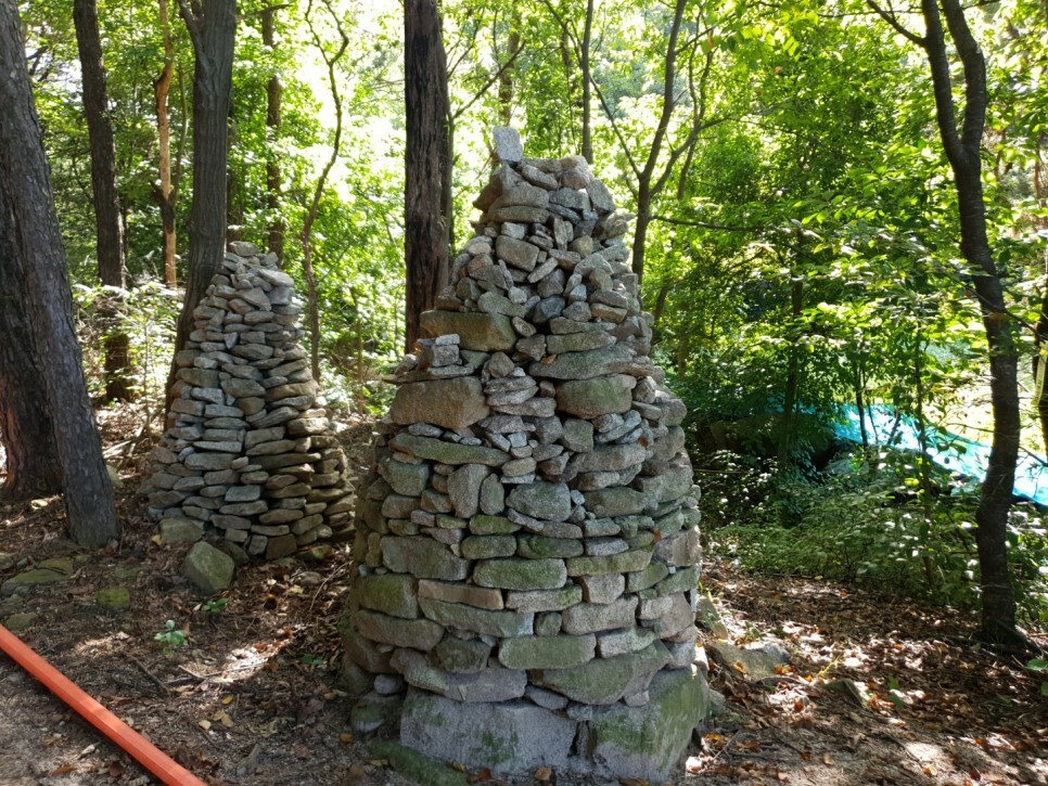 도락자연체험학습장을 들어서면 돌탑들이 보이기