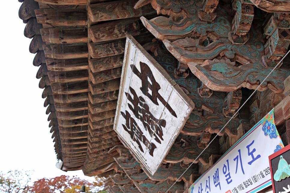 중악단 본전 안에는 계룡산 신이 신위와 영정이 모셔져있습니다. 중악단 본전 안 모습을 담을 수 없어서 현판을 잡아 보았습니다. 중악단에서 기도하는 스님과 불자에게 방해가 되지 않도록 조용히 중문간채로 나옵니다.