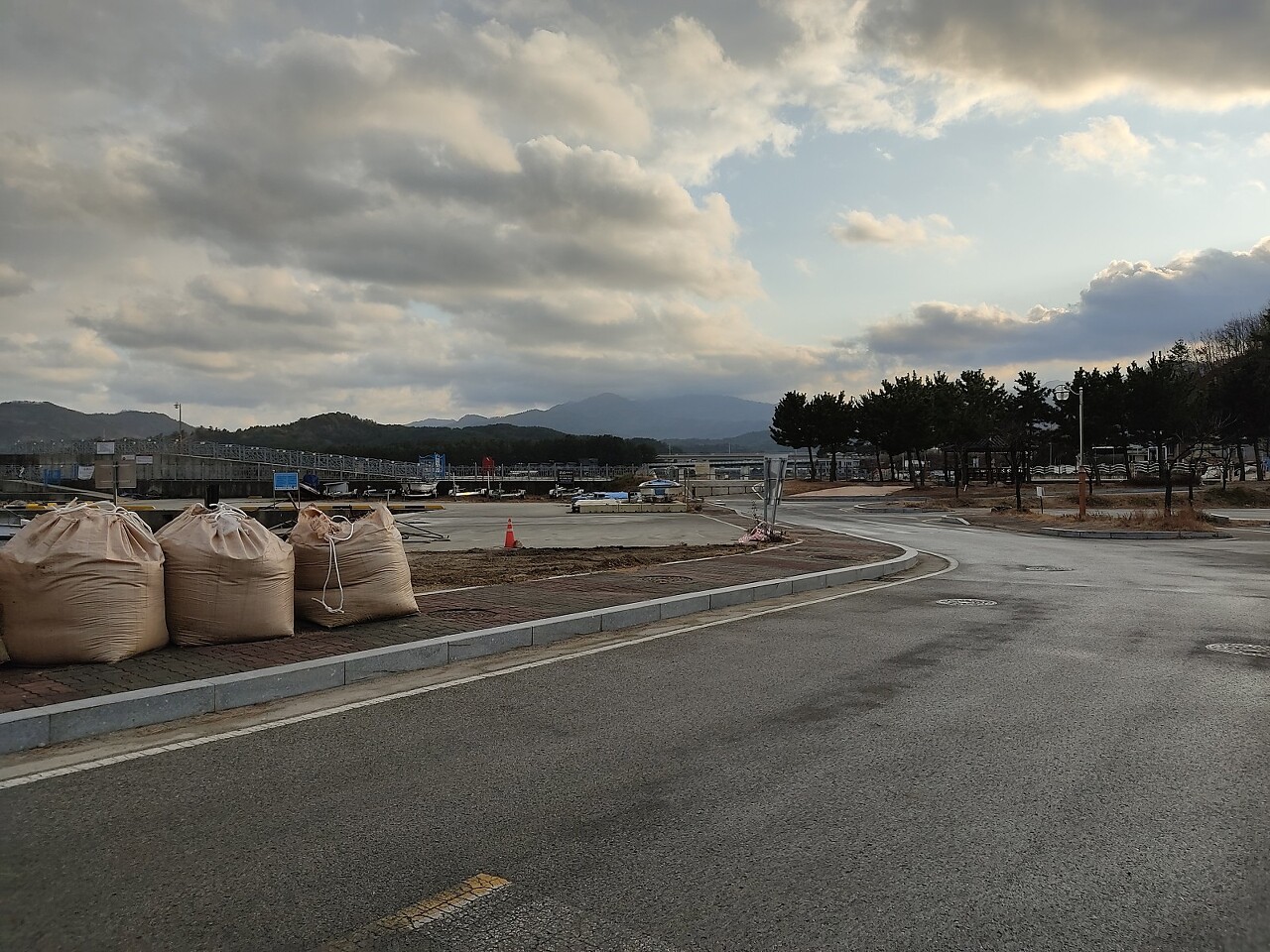 실제로도 옆에서 포크레인 하나가 열심히 뭔가를 하고 있었습니다. 이게 지금 국가어항포장보수공사의 일환인가 싶었습니다.