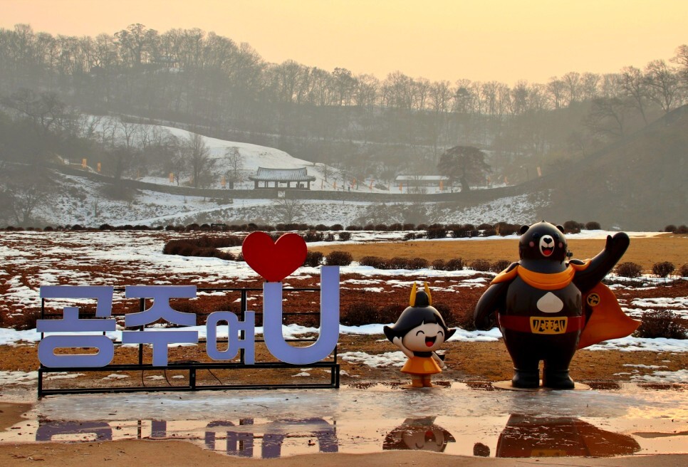 ‘공주여 U’ 공주라는 뜻의 충청도 방언식 표기인지 공주에 와서 반갑다는 뜻인 듯한 고마곰과 공주의 조형물이 반갑습니다.