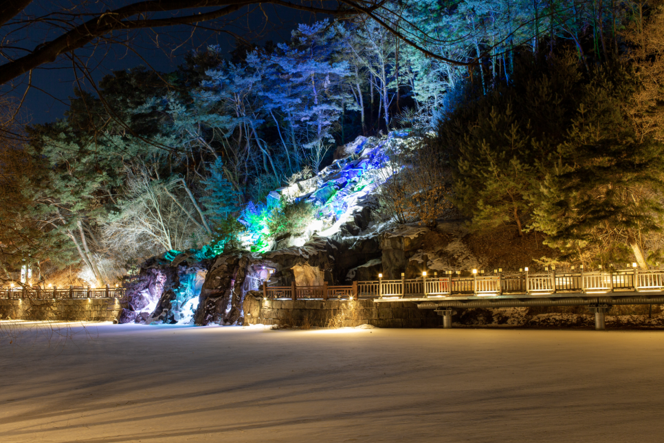 밤이 되니 낙하하는 용추폭포의 풍경이 선명하면서도 이색적으로 보였습니다.