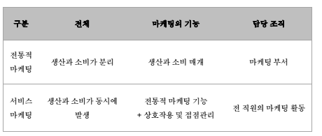 ■ 전통적 마케팅과 서비스 마케팅의 비교