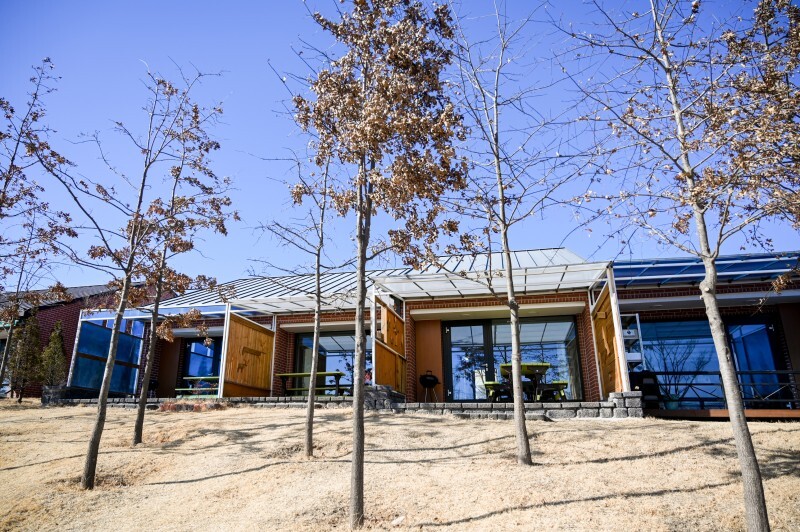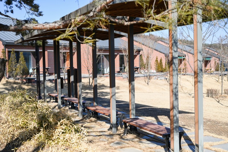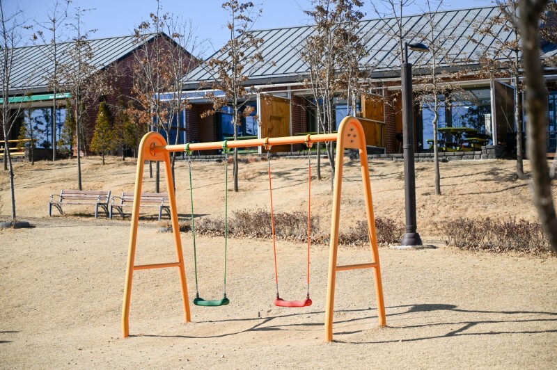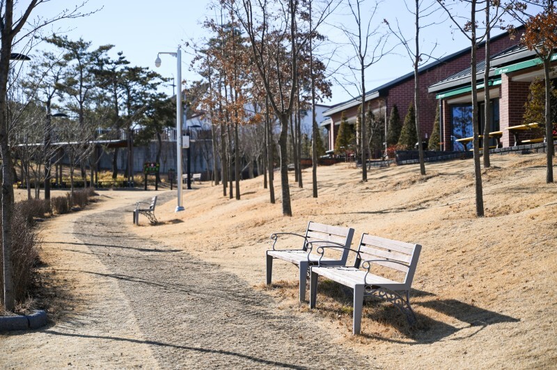 오가닉 테마파크에 들어서면 가장 먼저 눈에 띄는 것은 넓은 잔디광장입니다. 아직 겨울이 다 지나가지 않은 모습이지만 새 잎이 돋아나고 초록 잔디와 숲으로 물들면 정말 멋진 공원이 될 것입니다. 잔디광장은 주변 지역 단체나 근로자들의 체육대회 장소로도 사용됩니다. 아이들과 함께 오면 뛰어놀기 좋은 공간입니다.