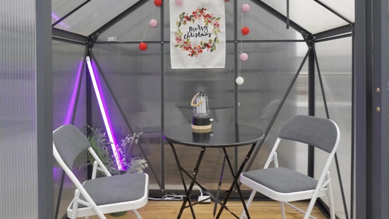 예술공간 결은 복층으로 이루어진 루프탑 카페인데요. 계단을 따라 올라가면 이렇게 아중호수의 전면이 환하게 펼쳐집니다. 자연경관을 바라보며 시원하게 앉는 좌석도 있고, 요즘 같은 시기엔 분리된 좌석의 안정감도 중요한데 이 작은 집 모양의 룸 좌석을 이용하면 캠핑 온 기분도 나고 안전할 것 같아요!